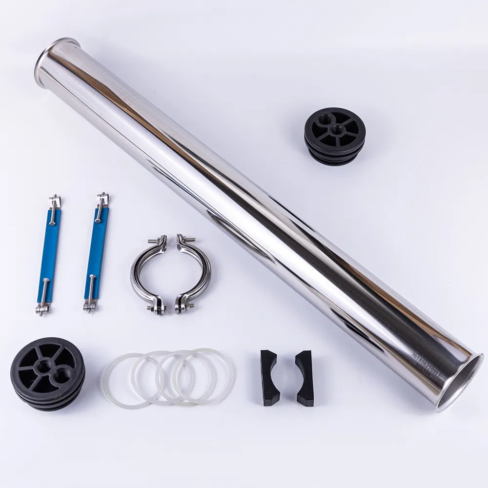 Products Details:SS membrane housing is the basic component of reverse osmosis equipment and the RO system. The material is 304 or 316L stainless steel seamless tubes. The sealing form of the end cover includes: clamp, flange, built-in; Water inlet mode covers end port and side port. The length is matched with the number of reverse osmosis membrane components. Inside and outside of the tube is polished.