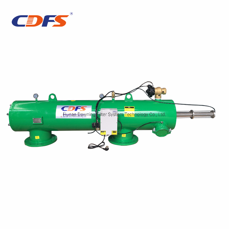 When the internal and external pressure difference reaches the set value, the self-cleaning mode starts.Drain pipe hydraulic valve open, sucking the scanner to produce negative pressure suction nozzle inside, absorbing impurities, at the same time sucking scanner in under hydraulic motor along the inside surface mesh do reciprocating screw, movement, no cleaning blind area, impurities by the discharge outlet.
